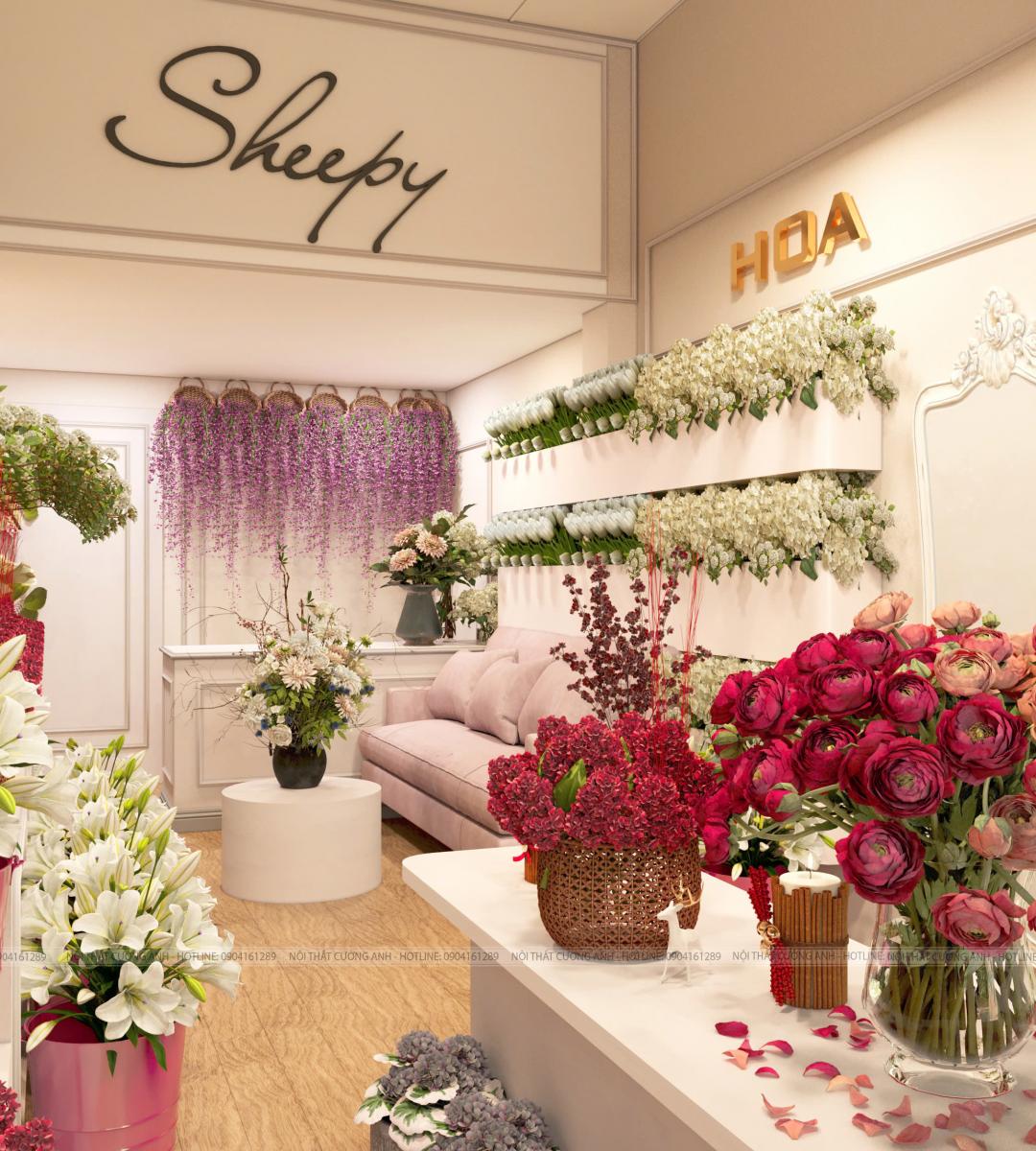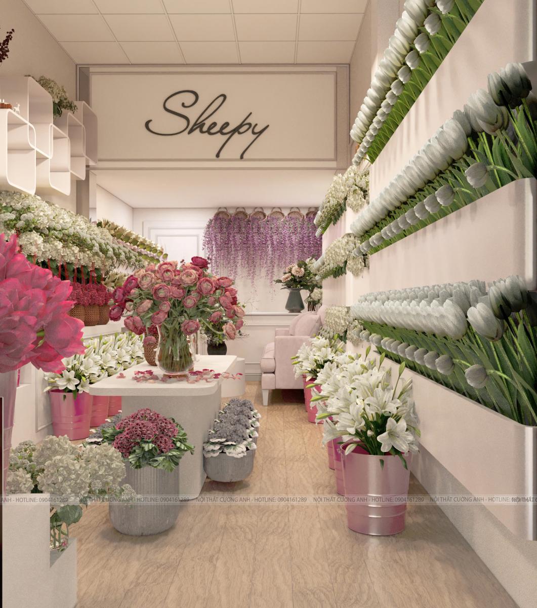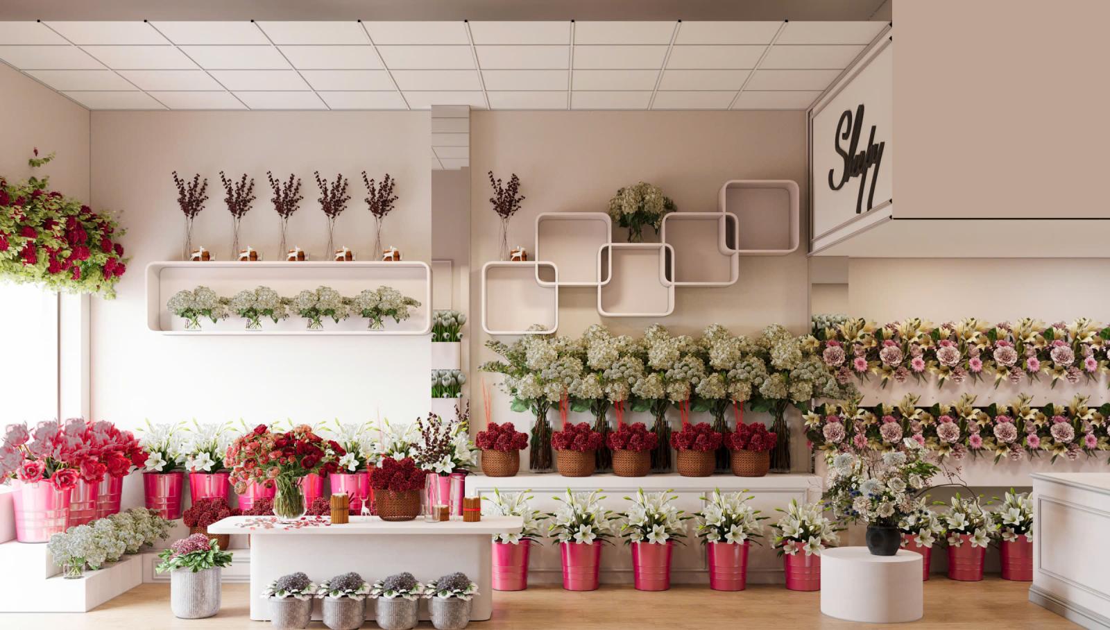 2. Thiết kế 3D: Kiến tạo không gian shop hoa tươi theo cá tính riêng của chủ đầu tư.