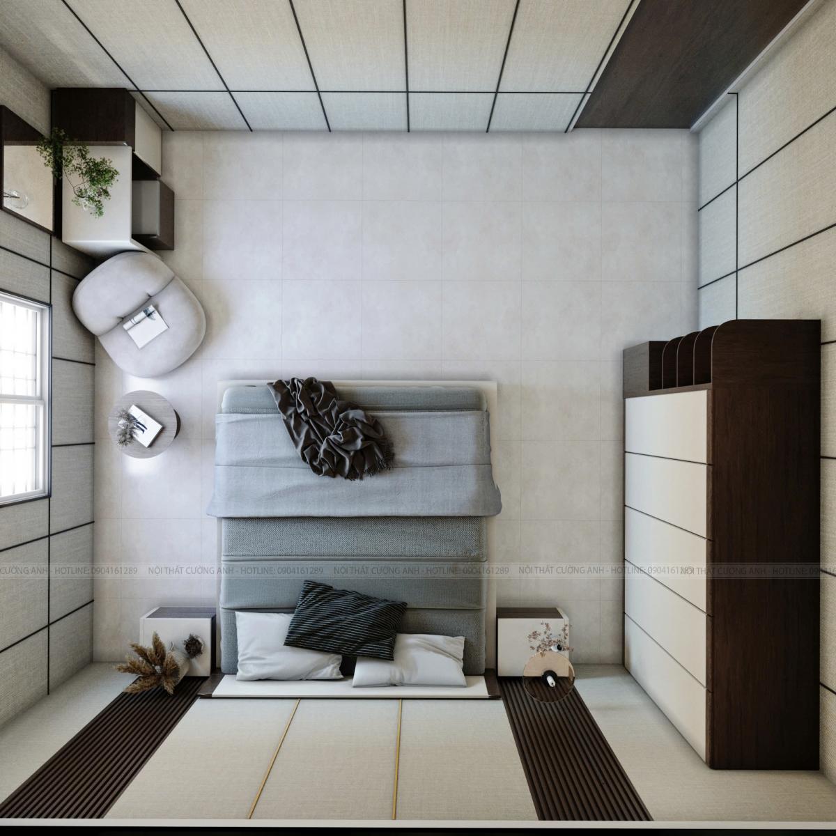 Góc nhìn tổng thể mặt bằng bố trí nội thất phòng ngủ hiện đại, tối ưu diện tích từ Cường Anh Home