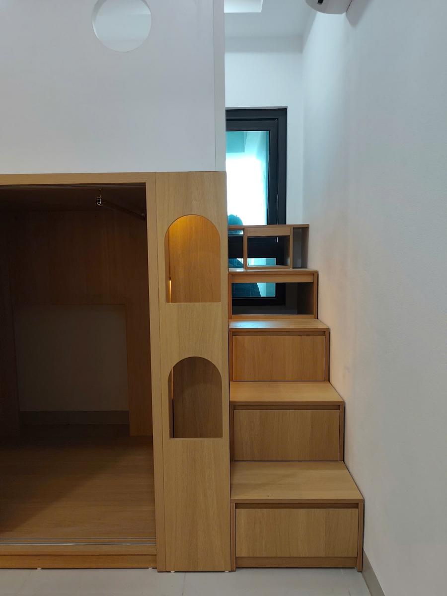 Sau khi thống nhất thiết kế, chúng tôi bắt đầu thi công các hạng mục chi tiết. Từ việc lắp đặt hệ thống điện, nước, đến việc gia công các sản phẩm nội thất như tủ bếp, giường, bàn ghế, kệ sách… tất cả đều được thực hiện cẩn thận, tỉ mỉ.