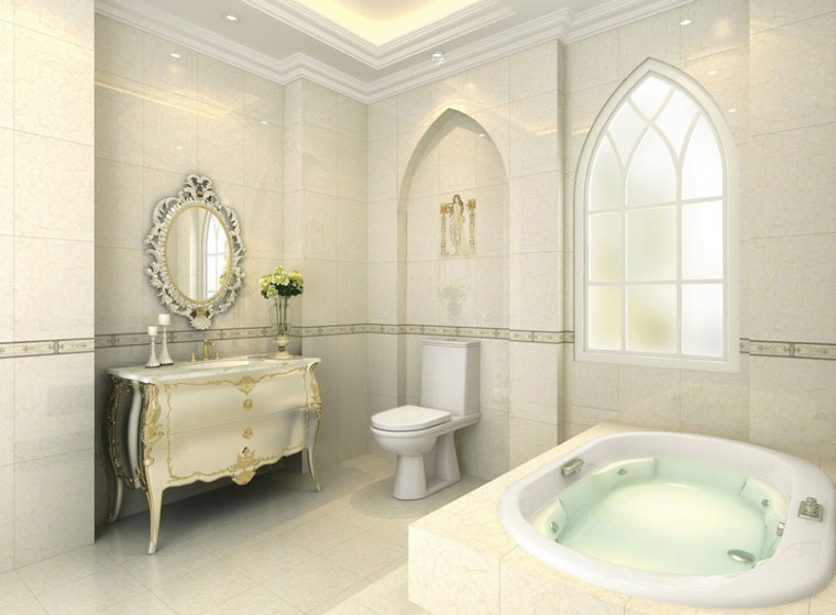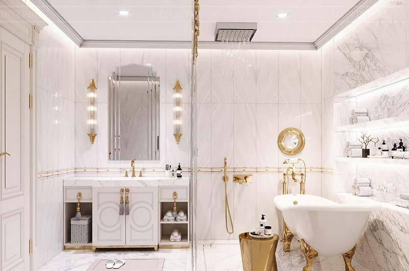 Nội thất phòng tắm tâm cổ điển hiện đại.