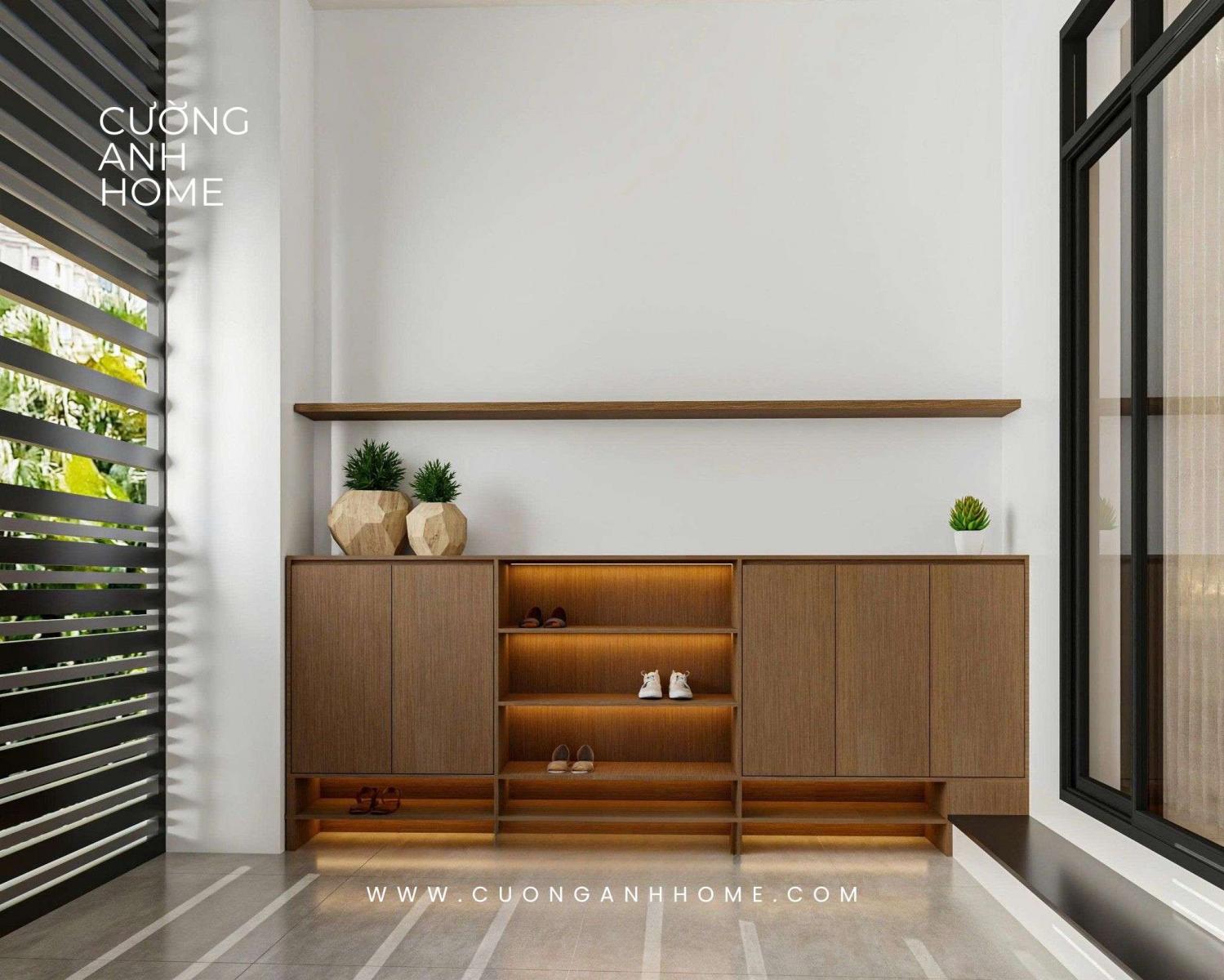 Thiết Kế Sảnh Đón Với Hệ Tủ Giày Kịch Trần Thông Minh