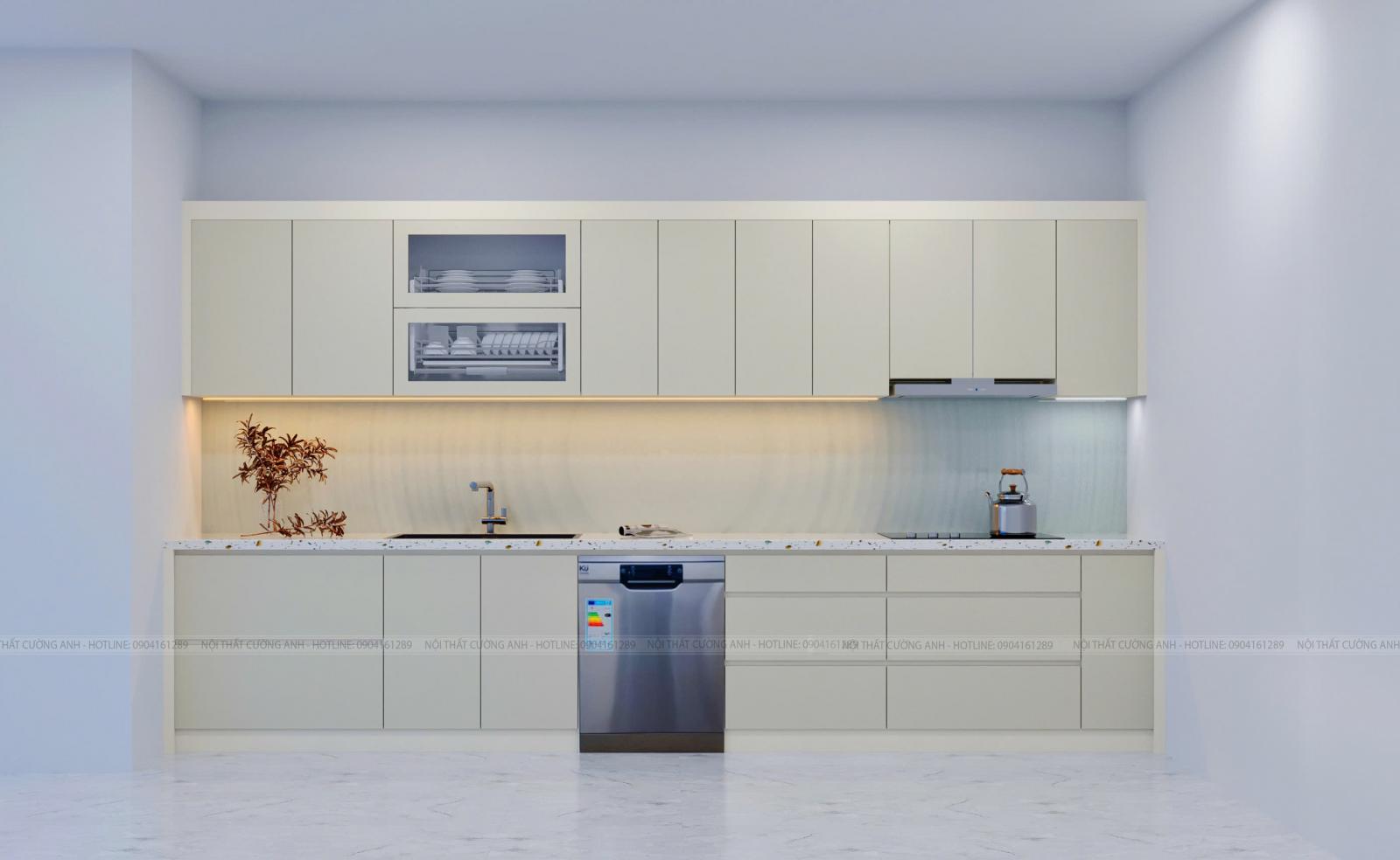Mọi khoang chứa đồ, từ vị trí đặt máy rửa bát đến giá bát nâng hạ, đều được tối ưu theo thói quen sinh hoạt của người nội trợ Việt.